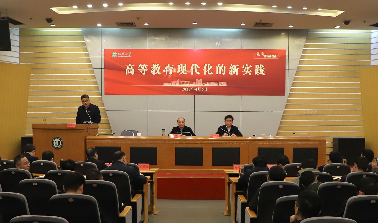 4月6日,校长颜晓红、校党委副书记李洪波走进校园热点面对面之“高等教育现代化的新实践”活动现场,与老师们面对面交流,围绕如何夯实大学的归依,探索行业特色地方高校的高等教育现代化特色发展之路,在中国科教体系中传递乐鱼(中国)模式、乐鱼(中国)方案进行现场释疑解惑。校党委常委、宣传部部长杨道建主持活动。