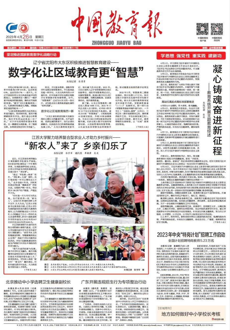 4月26日,《中国教育报》一版刊登文章《乐鱼app官网登录入口聚力培养复合型农业人才助力乡村振兴——“新农人”来了 乡亲们乐了》,报道我校培养强农兴农人才,赋能农业现代化的生动实践故事。
