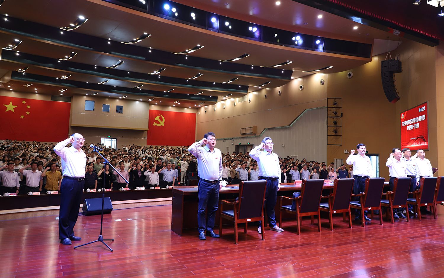 6月6日,学校举行2023届毕业班学生党员代表重温入党誓词活动暨毕业生最后一堂思政课,进一步推进主题教育走深走实,不断加强大学生党员的理想信念和党性教育,激励毕业生党员争做有理想、敢担当、能吃苦、肯奋斗的新时代好青年。