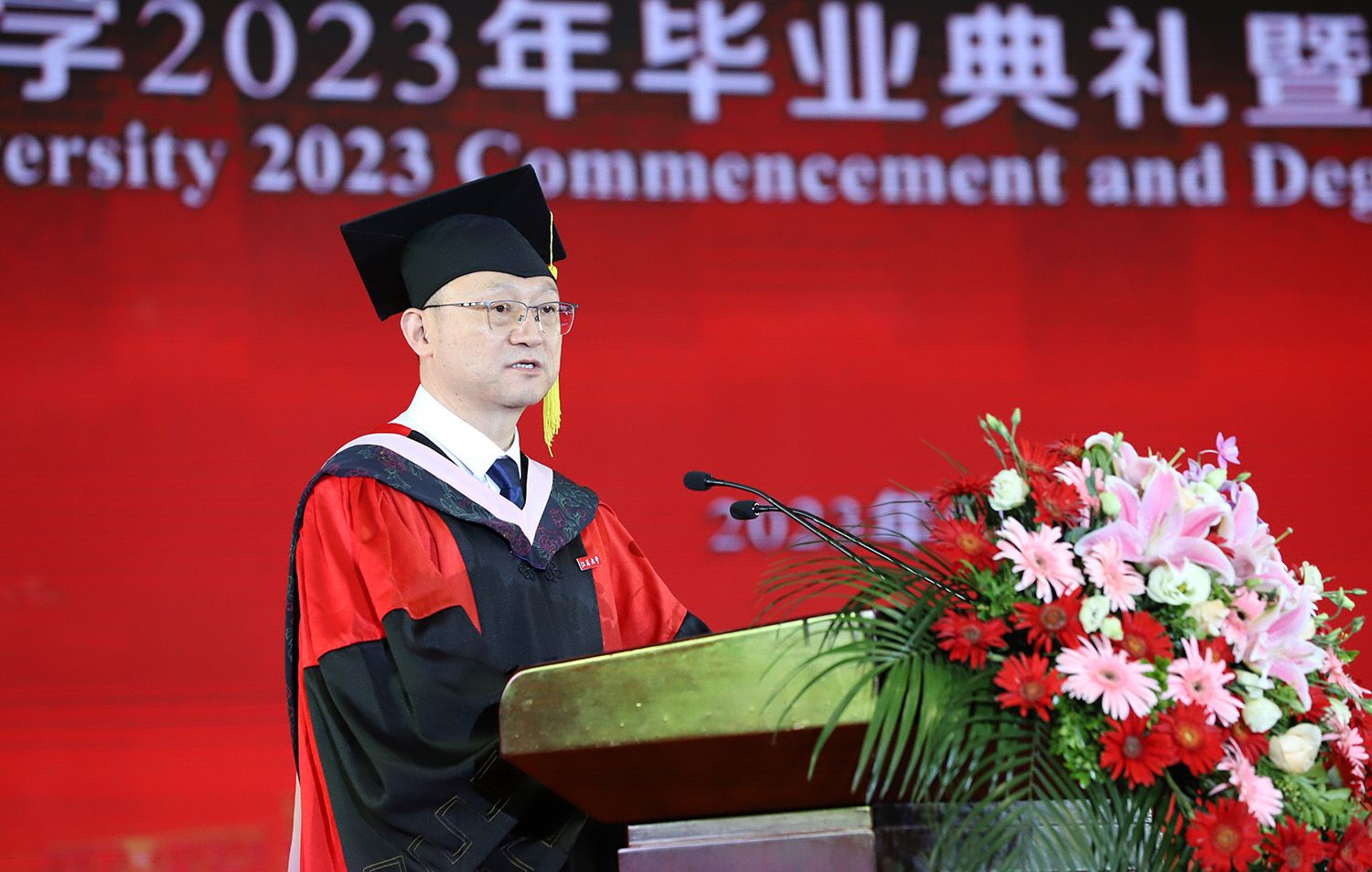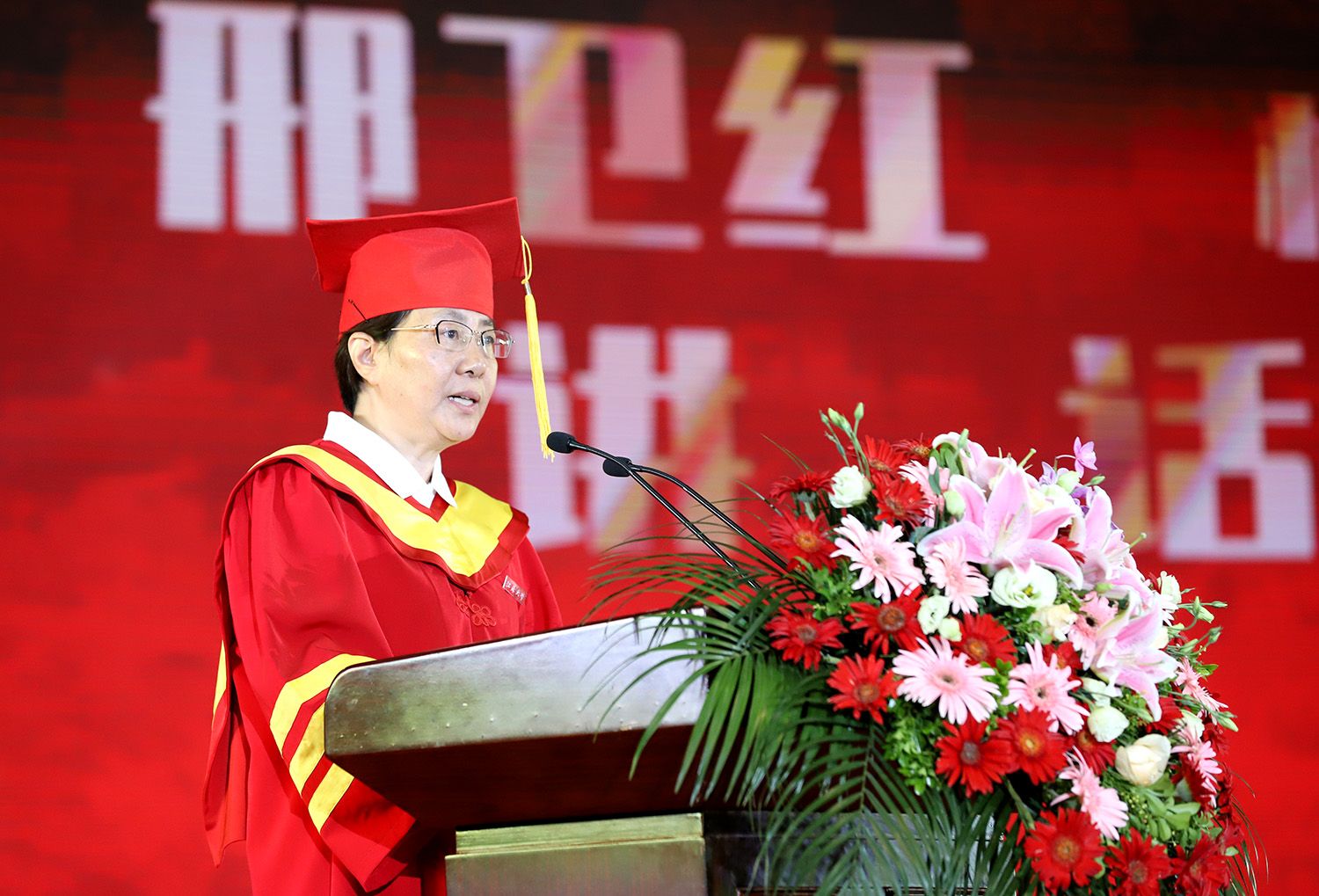 校长邢卫红发表题为《经风历雨 奔赴山海》的讲话。她代表学校向全体毕业生致以热烈的祝贺。邢卫红说,2023届毕业生是特殊的一届毕业生,经历了3年多新冠疫情的考验,铸就了包容坚毅的品格气质,体现了乐鱼(中国)青年的责任担当,取得一个又一个骄人的成果。邢卫红说,矢志奋斗、砥砺前行的精神品格已然成为2023届毕业生的共同坚守,相信优秀的同学们终将造就更加优秀的乐鱼(中国)。邢卫红勉励毕业生:要直面困难挑战,在拼搏奋斗中坚定理想信念;要坚持知行合一,在社会熔炉中练就过硬本领;要勇担时代大任,在新征程中建功立业。邢卫红希望毕业生在强国复兴伟大征程中续写乐鱼(中国)故事、贡献乐鱼(中国)力量、彰显乐鱼(中国)影响,并祝愿大家在奔赴人生下一场“星辰大海”的路上,所见皆美好,所得皆所愿。