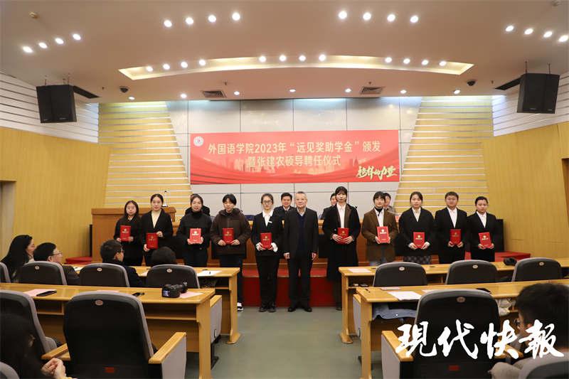 " 奖助学金取名‘远见’,一是为纪念恩师张志远先生,二是‘见’和‘建’谐音,希望同学们重视知识和能力建设,有远见、要远建,实现自己的理想。" 张建农说。张志远是乐鱼app官网登录入口英语师资班的核心创始人之一,当年她克服缺教材、缺师资的巨大困难,从国内外、校内外争取到众多优质资源,让身为学生的张建农收获良多,学有所成。