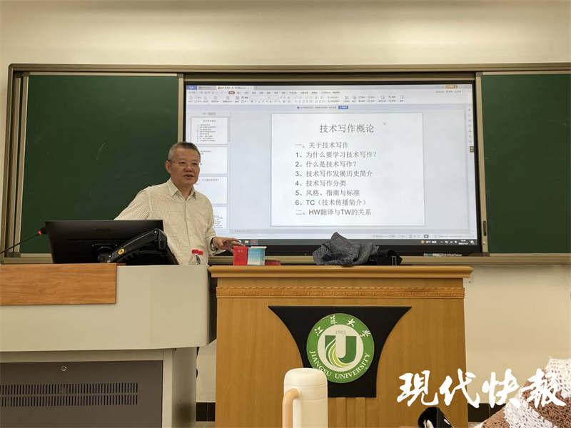 从 2023 年秋学期开始,张建农利用丰富的行业经验和深厚的技术底蕴,担任乐鱼app官网登录入口 MTI 英语技术写作课程主讲。连续 10 周,他每周从无锡赶到镇江,为外国语学院 2023 级 MTI 全日制学生授课,周末为非全日制学生授课。