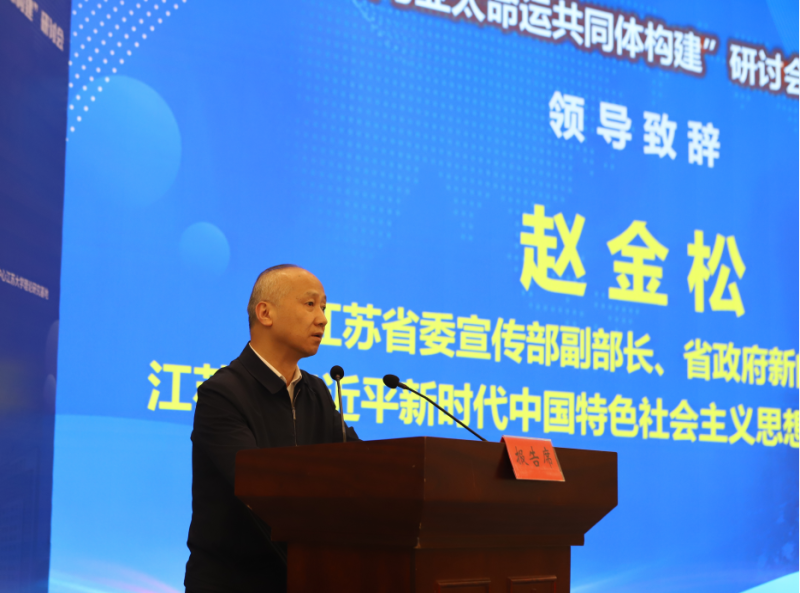 江苏省委宣传部副部长赵金松在致辞中表示:深入研讨“三大全球倡议”与亚太命运共同体构建,需要我们阐明亚太命运共同体是人类命运共同体的新实践,为消解西方之全球市场体系狭隘的利己属性,实现国家之间平等与共同发展提供了路径选择。阐明只有和睦相处、合作共赢,亚太繁荣才能持久,亚太安全才有保障。阐明中国坚持敞开大门搞建设,坚定不移推进高水平对外开放,打造市场化、法制化、国际化营商环境,是真正扎根亚太、建设亚太、造福亚太。