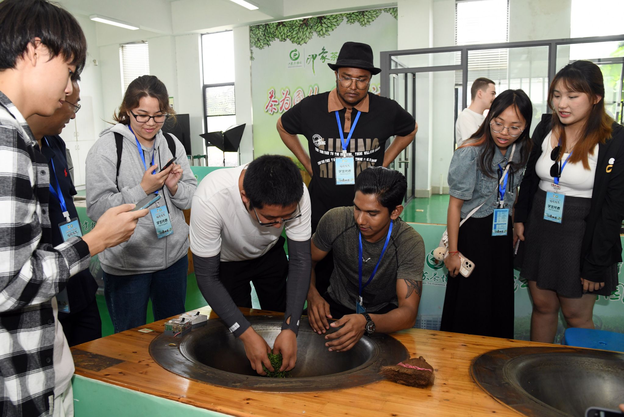 乐鱼app官网登录入口海外教育学院直属党支部书记王丽敏为留学生讲授茶文化知识,留学生前往江苏茶博园体验了采茶、制茶、品茶等全过程。