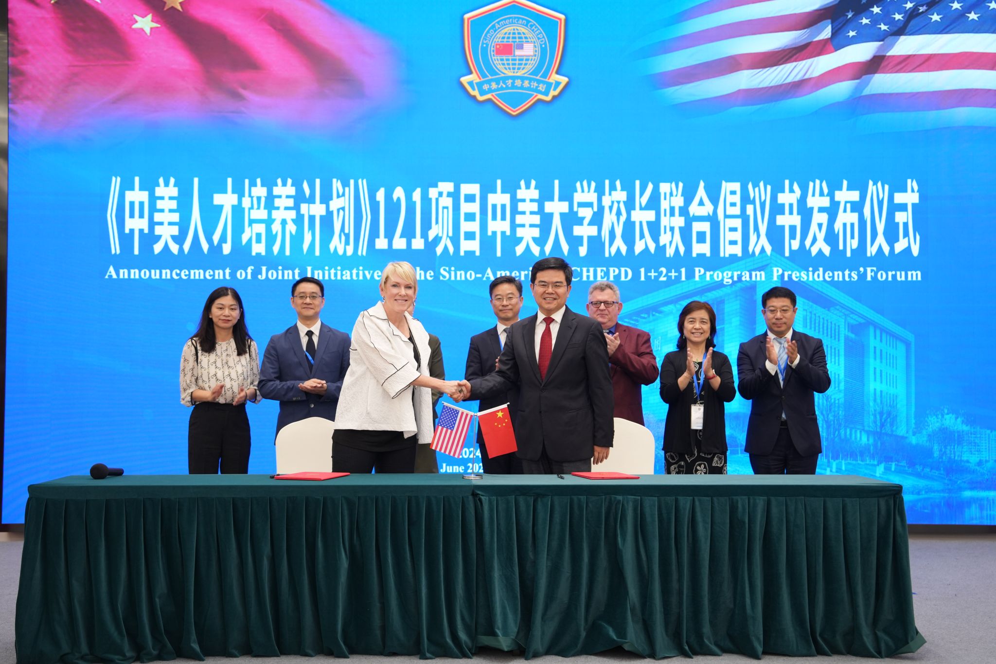 据了解,《中美人才培养计划》121项目自2001年3月启动,由中国教育国际交流协会、中教国际教育交流中心以及美国州立大学与学院协会共同合作与管理,目前已有175所中美大学参加项目(其中:中方大学133所,美方大学42所),共有21届本科生和研究生同时获得中美双方大学授予的毕业证书和学士(硕士)学位。该项目已发展成为中美两国之间参与高校最多、持续时间最长、合作范围最广的高等院校合作与交流平台。