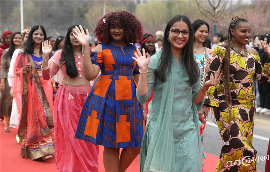 3月8日,乐鱼app官网登录入口举办“美丽邂逅 梦想绽放”庆祝活动,该校以女教师、女大学生、女留学生等女性群体为主的文化社团用“红毯秀”的形式,展示女性风采,庆祝属于自己的节日。