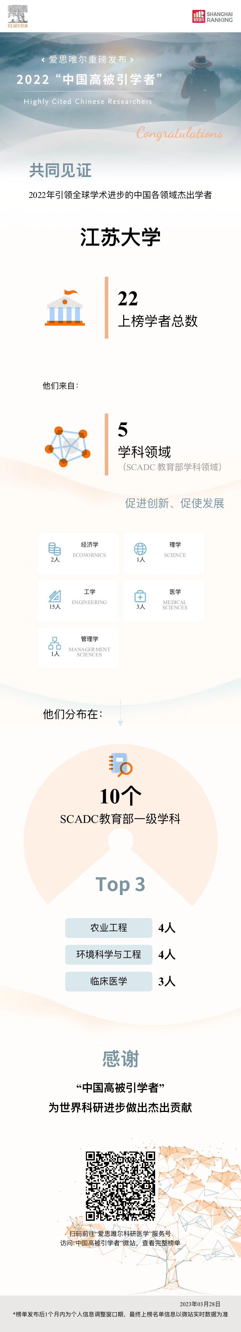 3月28日,爱思唯尔(Elsevier)出版公司正式发布2022年“中国高被引学者”榜单,全国共有来自504所高校、科研机构及企业的5216位学者入选。其中,乐鱼app官网登录入口共有22人入选,较上年增加3人。