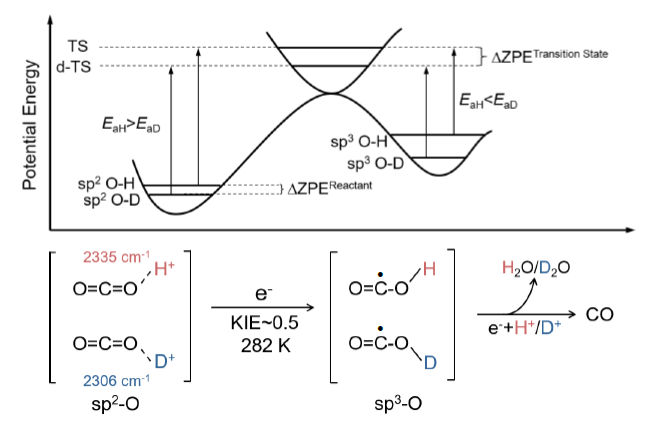 近日,我校化学化工学院绿色化学与化工技术创新团队的最新研究论文“Elucidating protonation pathways in CO2 photoreduction using the kinetic isotope effect” 在自然科学领域顶级期刊Nature Communications (IF:17.69)上在线发表。乐鱼app官网登录入口为第一完成单位,博士生尹士康为第一作者,闫研教授和霍鹏伟教授为通讯作者。