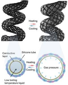 图2. 编织卷绕型人工肌肉的无泵驱动原理示意图